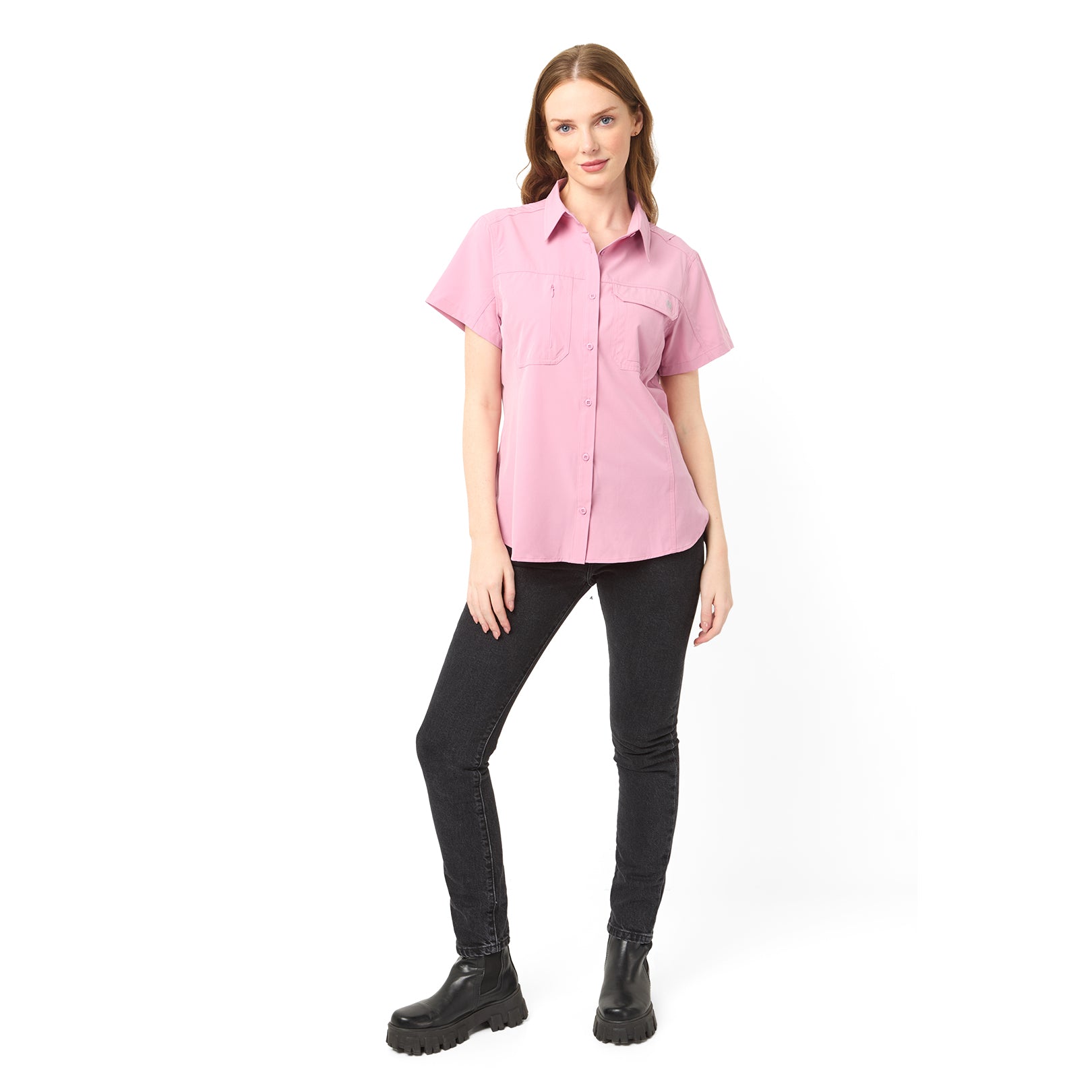 Ideal para aventuras bajo el sol, esta camisa de manga corta ofrece frescura, ligereza y confort en todo momento. Su tejido transpirable y de secado rápido ayuda a mantenerte seca, mientras que su diseño femenino y funcional se adapta tanto a la naturaleza como a la ciudad.